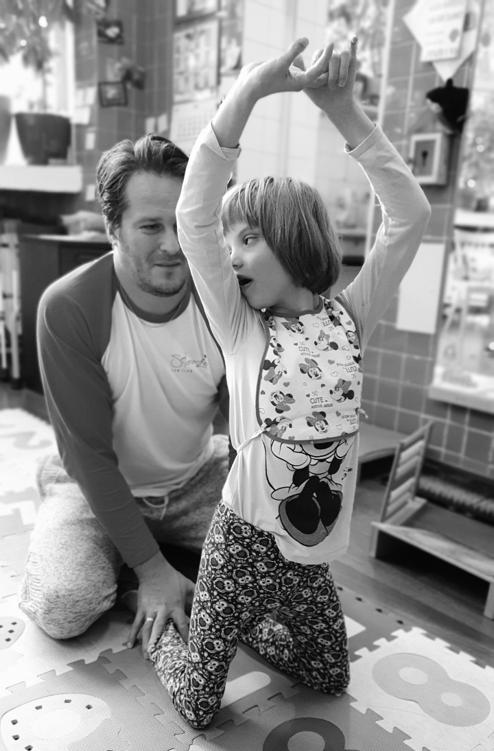 V roku 2019 nás obišli aj všetky hrôzostrašné pády a otrasy mozgu, malé odreniny Kiku neodradili v jej putovaní. Čo nás ale asi najviac teší je, že ju chodenie veľmi baví, len potrebuje naše garde za chrbtom. Denne prejde asi 1000-2000 krokov, v závislosti od počasia, nálady, únavy a od toho, či je pracovný deň alebo voľno. Všetky tieto novinky sú určite aj vďaka jej neúnavnej intenzívnej rehabilitácii v rôznych fyzio centrách – v Adeli Pieštany, Charis od Alatyr v Bratislave a v Centre Gardenia Bratislava. Tento rok sme prvý krát upustili od Adeli a boli sme tam len 2x, naviac sme ale pridali nové rehabilitačné centrum v Bratislave. Keďže každé fyzio centrum sa zameriava na niečo iné, sme presvedčení, že ich kombináciou Kika dosiahne ten optimálny efekt.