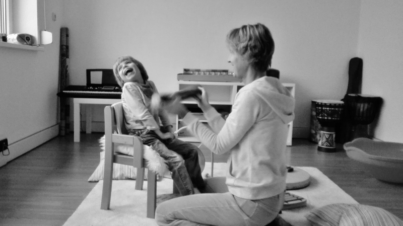 Zábava s dažďovou palicou v K-Centre (muzikoterapia)