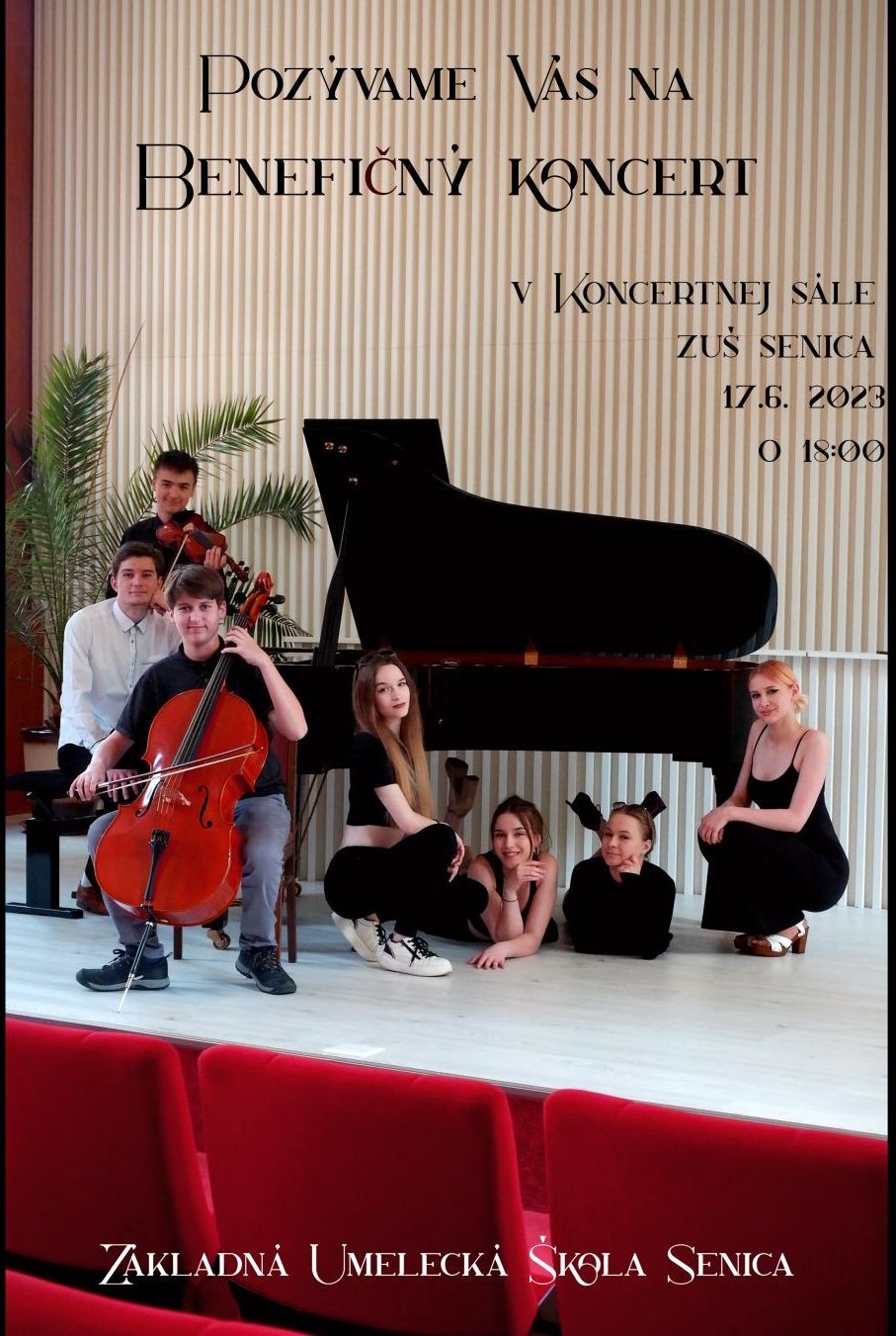 V spolupráci so Základnou umeleckou školou Senica (ZUŠ) sme v sobotu 17.6.2023 zorganizovali hudobný benefičný koncert. Konal sa o 18:00 hod. v koncertnej sále ZUŠ Senica. Na koncerte odznela hudba v klasikom aj modernom podaní. Mladé dievčatá a chlapci hrali famózne na hudobné nástroje alebo aj spievali, a to všetko pre dobrú vec. Výťažok koncertu bol venovaný na KIKI, o.z. pre Kristínku Skalskú. Podarilo sa vyzbierať krásnych 512 eur. Koncert a dychberúce výkony mladých umelcov boli pre hojný počet divákov nezabudnuteľným zážitkom. Všetkým veľmi pekne Ďakujeme, že sme boli byť súčasťou! Krátky zostrih z koncertu odvysielala aj regionálna televízia TV SEN.