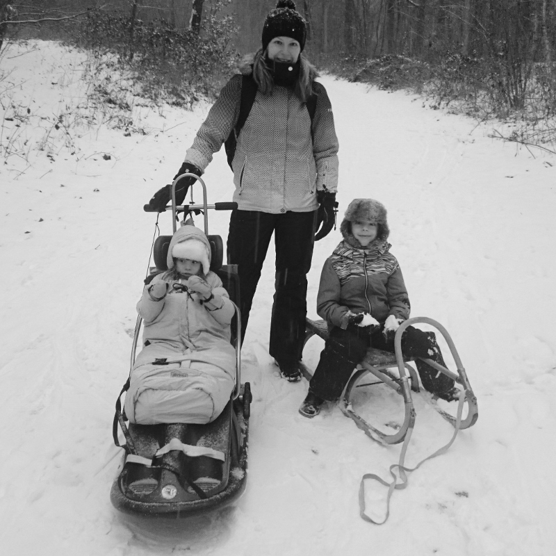 Jedna z mnohých pomôcok - špeciálne sánky, tie vľavo :-)